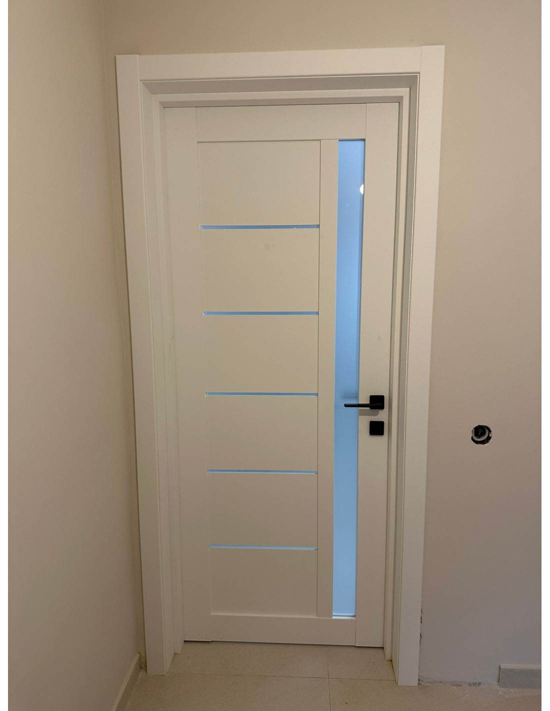 Ușă de interior - de tip ramă și panou, finisată cu Polipropilenă Premium.
