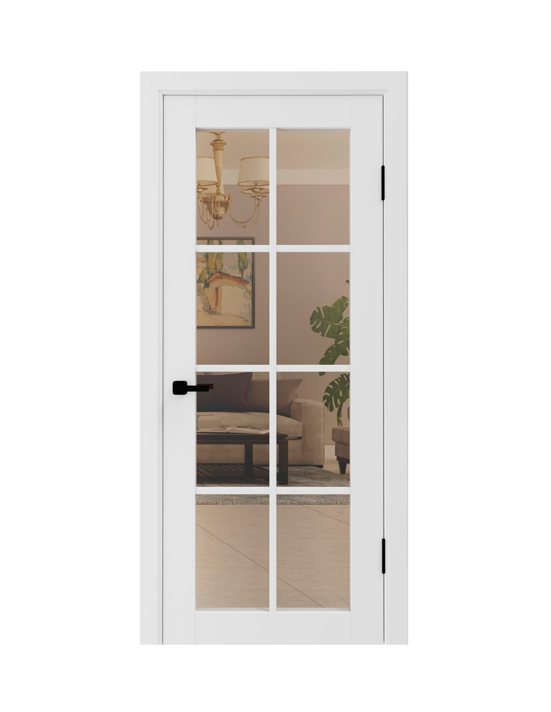 La construcția ușii se folosește sticlă călită de 4 mm grosime. Pe sticlă sunt aplicate baghete decorative.