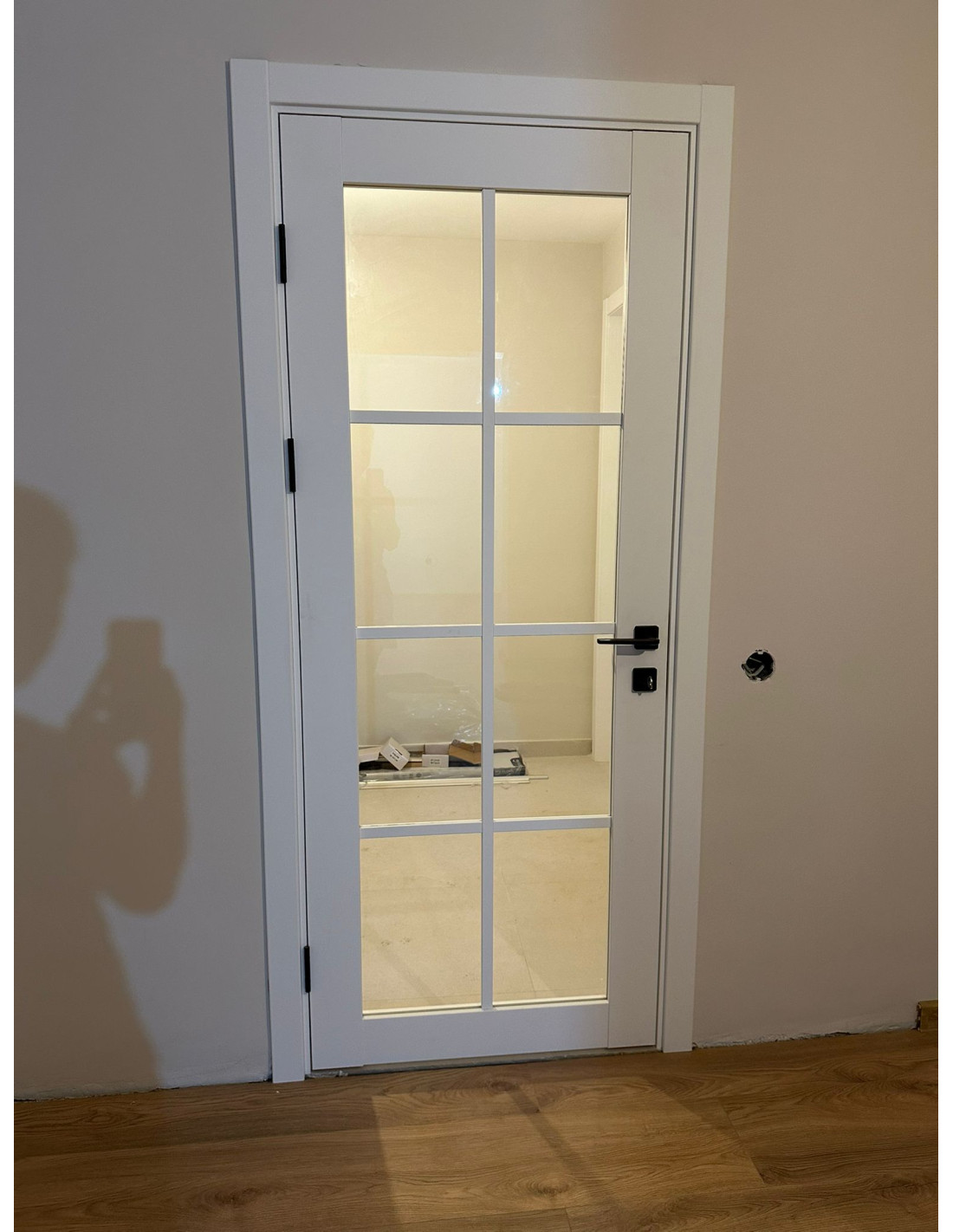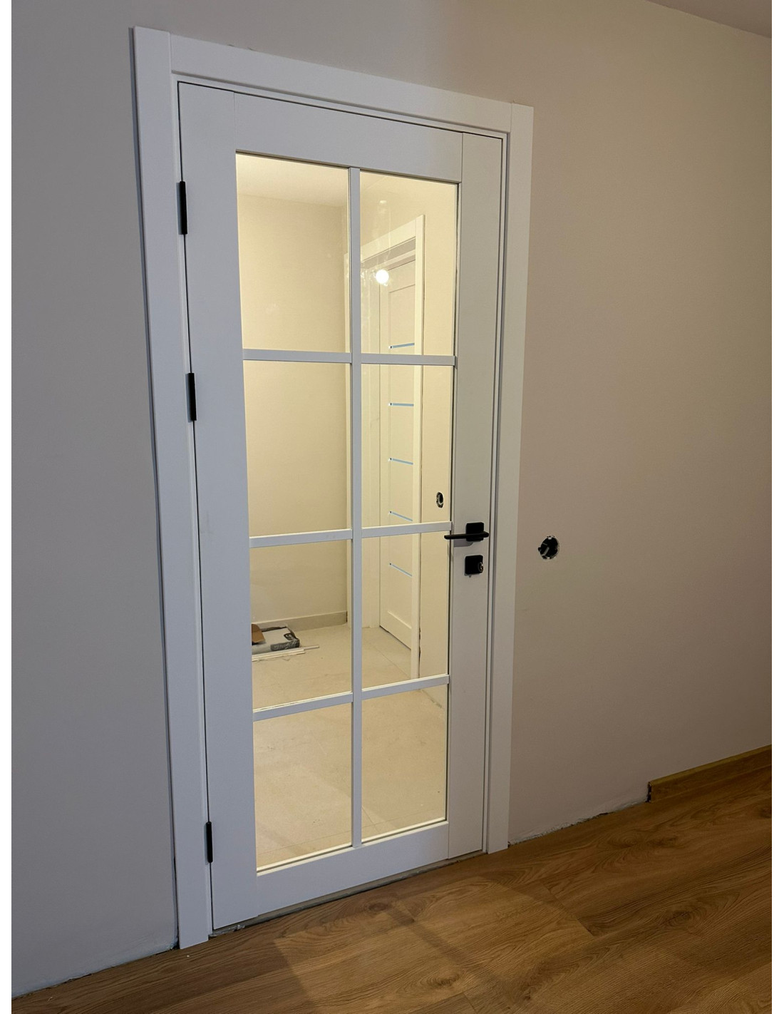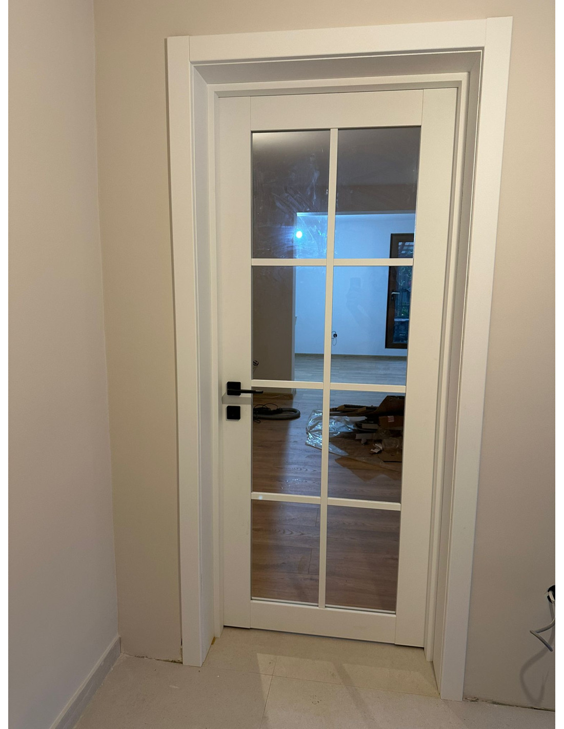 Ușa are rama din lemn masiv și MDF. Tocul este reglabil - cu pervaze pe ambele părți.