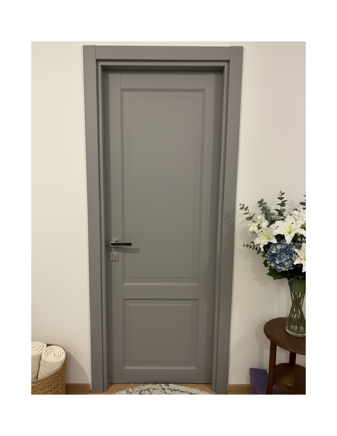 Ușă de interior - de tip ramă și panou, finisată cu folie PVC Deluxe.