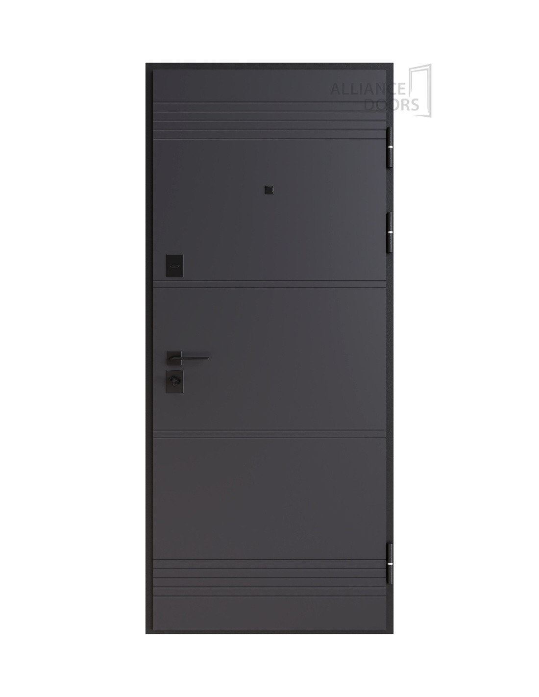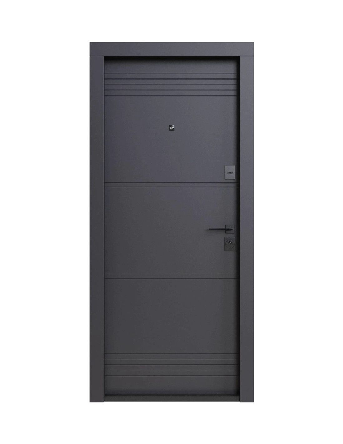 Ușa metalică Montana este echipată cu sisteme de închidere Securemme (Italia), iar mânerele și rozetele sunt de la Comit.