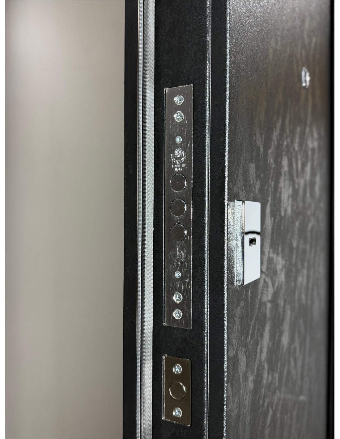 Ușa este echipată cu feronerie Securemme (Italia).